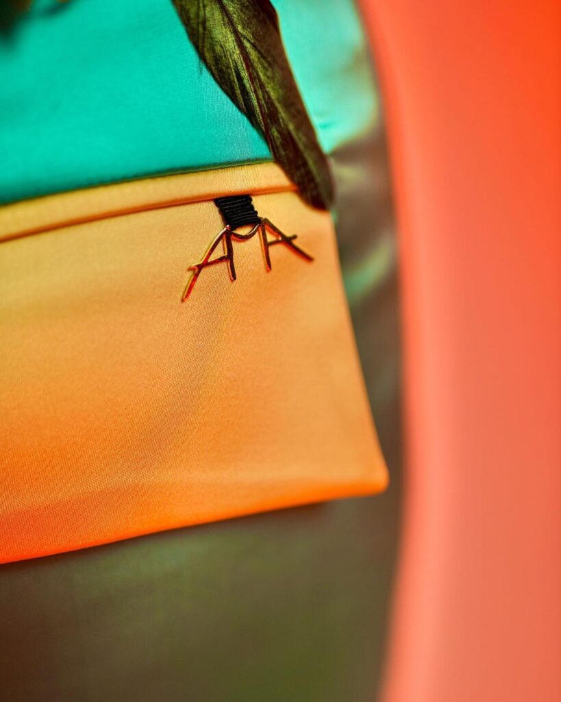 AMA’S logo, cleverly incorporating the designer’s name, is a symbol of silent confidence, strength, and power. Its presence on every garment highlights its significance and unifies the brand’s creations. With its gold-plated design, the logo represents the values of luxury, uniqueness, and individuality, leaving a lasting impression on all who encounter it.