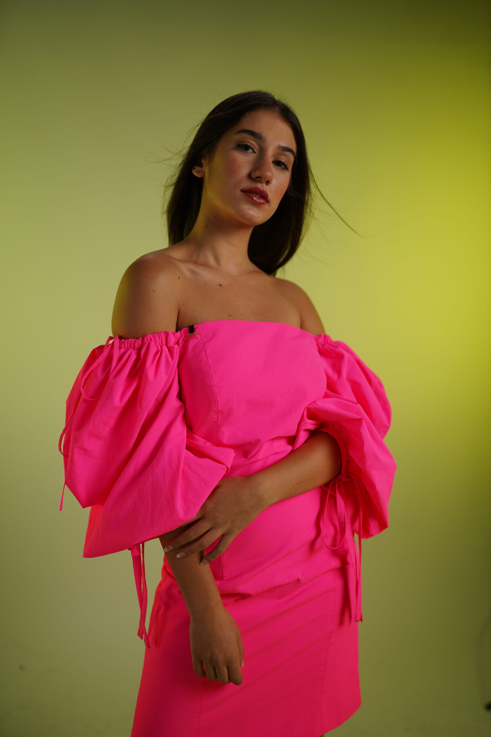 Introducing the delightful candy dress, a whimsical and playful creation that exudes sweetness and charm. This above-the-knee length dress features a back slit for a touch of allure, while the voluminous sleeves adorned with ribbons add a playful and feminine touch.