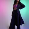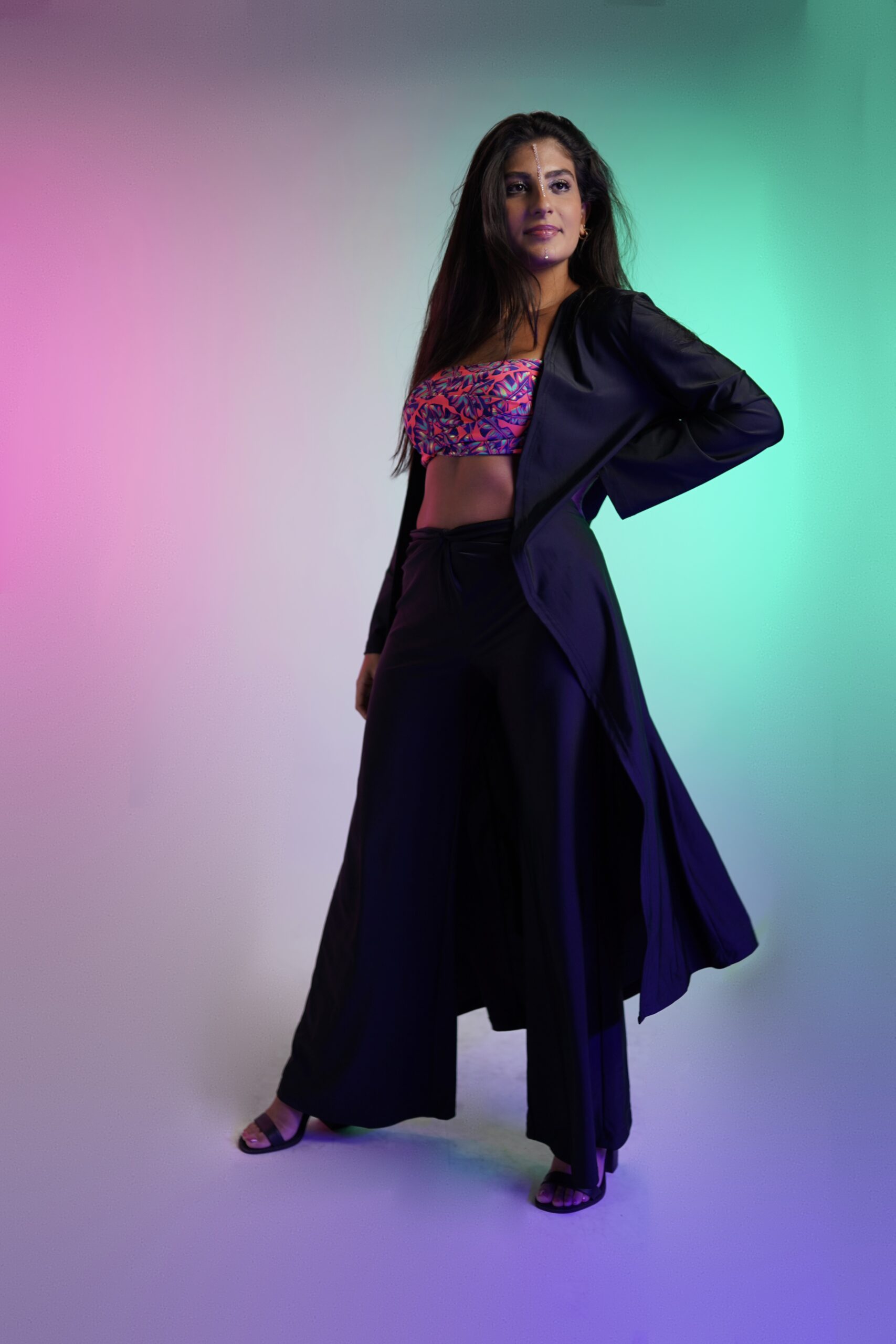 The flawless set is a stylish ensemble featuring a detailed waist design and a long cardigan. The specific details and colors may vary based on fashion trends and personal preferences.