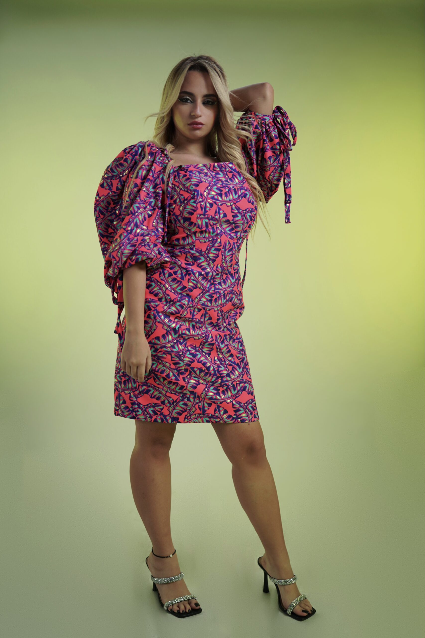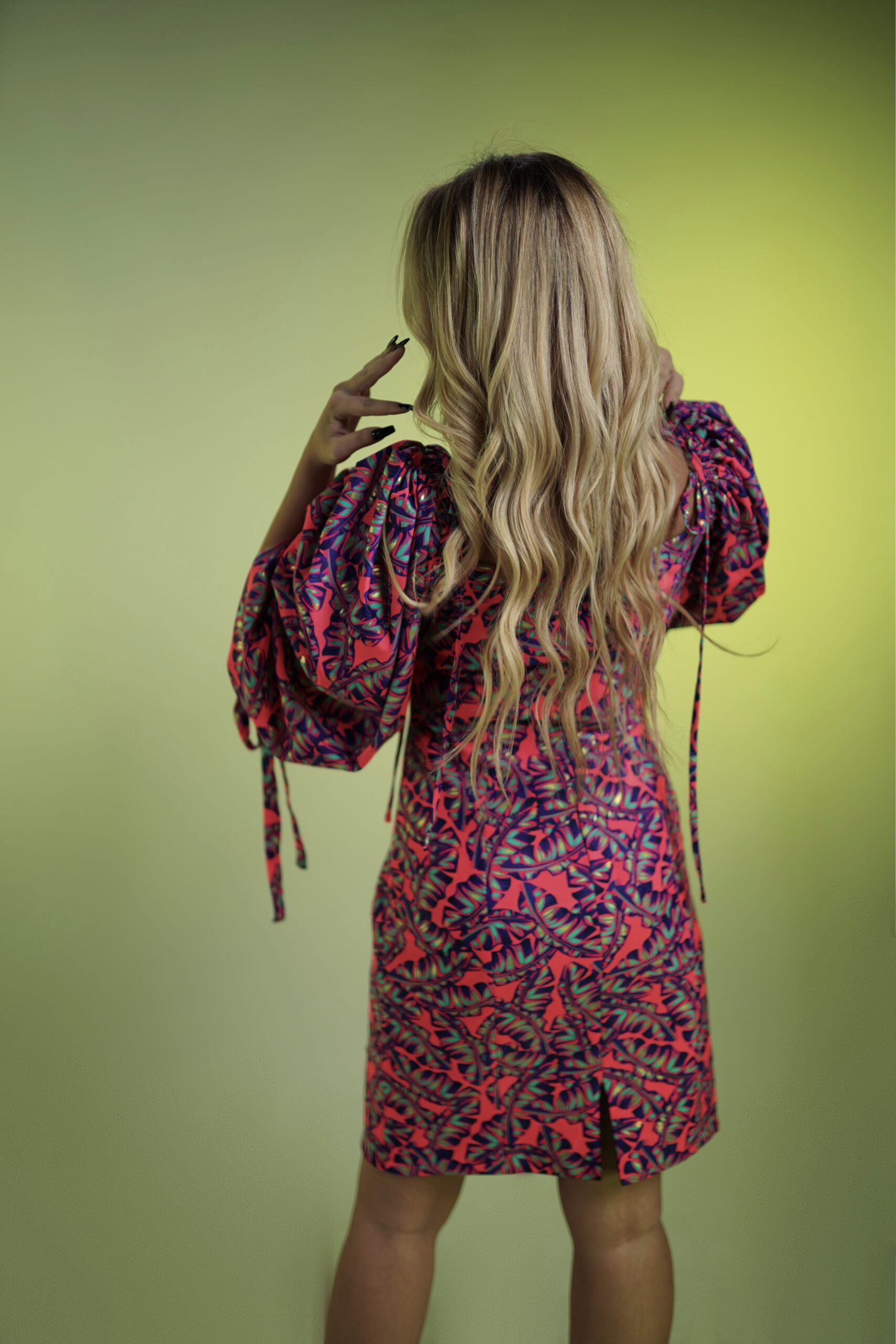 Introducing the delightful candy dress, a whimsical and playful creation that exudes sweetness and charm. This above-the-knee length dress features a back slit for a touch of allure, while the voluminous sleeves adorned with ribbons add a playful and feminine touch.